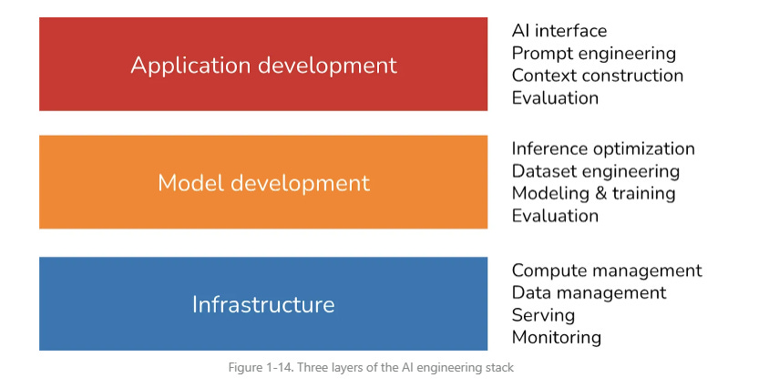 Così come questa immagine riassume in modo chiaro i principali strati dell’AI engineering con le sue componenti essenziali.