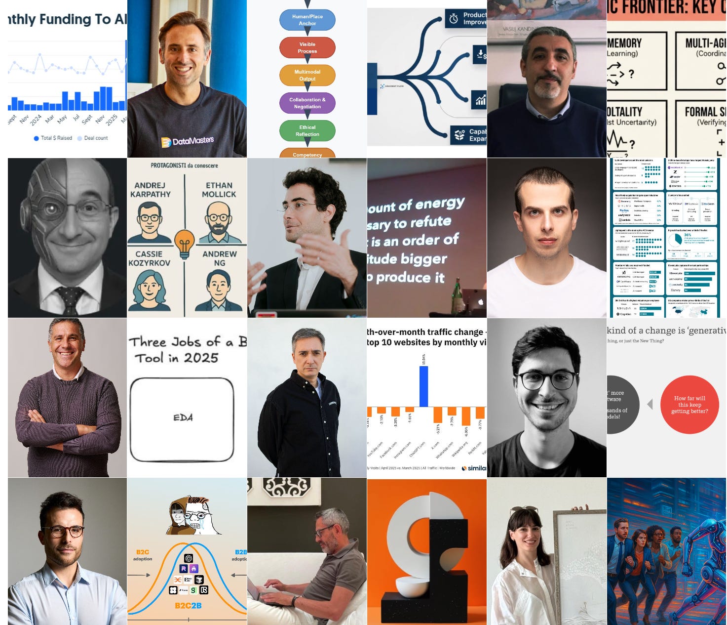 1) Di persone di cui leggo sempre ogni post o sento ogni intervento pubblico, anche se lungo. In questo caso non uso mai nessuna intelligenza artificiale per alcun tipo di sintesi: al massimo per approfondimenti, se necessario. In questo cluster, per farti un esempio, ci sono i “magnifici quattro” che abbiamo consigliato con Alberto nell’ultimo libro che abbiamo scritto: Andrej Karpathy, Cassie Kozyrkov, Ethan Mollick e Andrew Ng. Ce n’è un’altra decina come questi, ma tendenzialmente scrivono meno frequentemente rispetto ai “magnifici”.