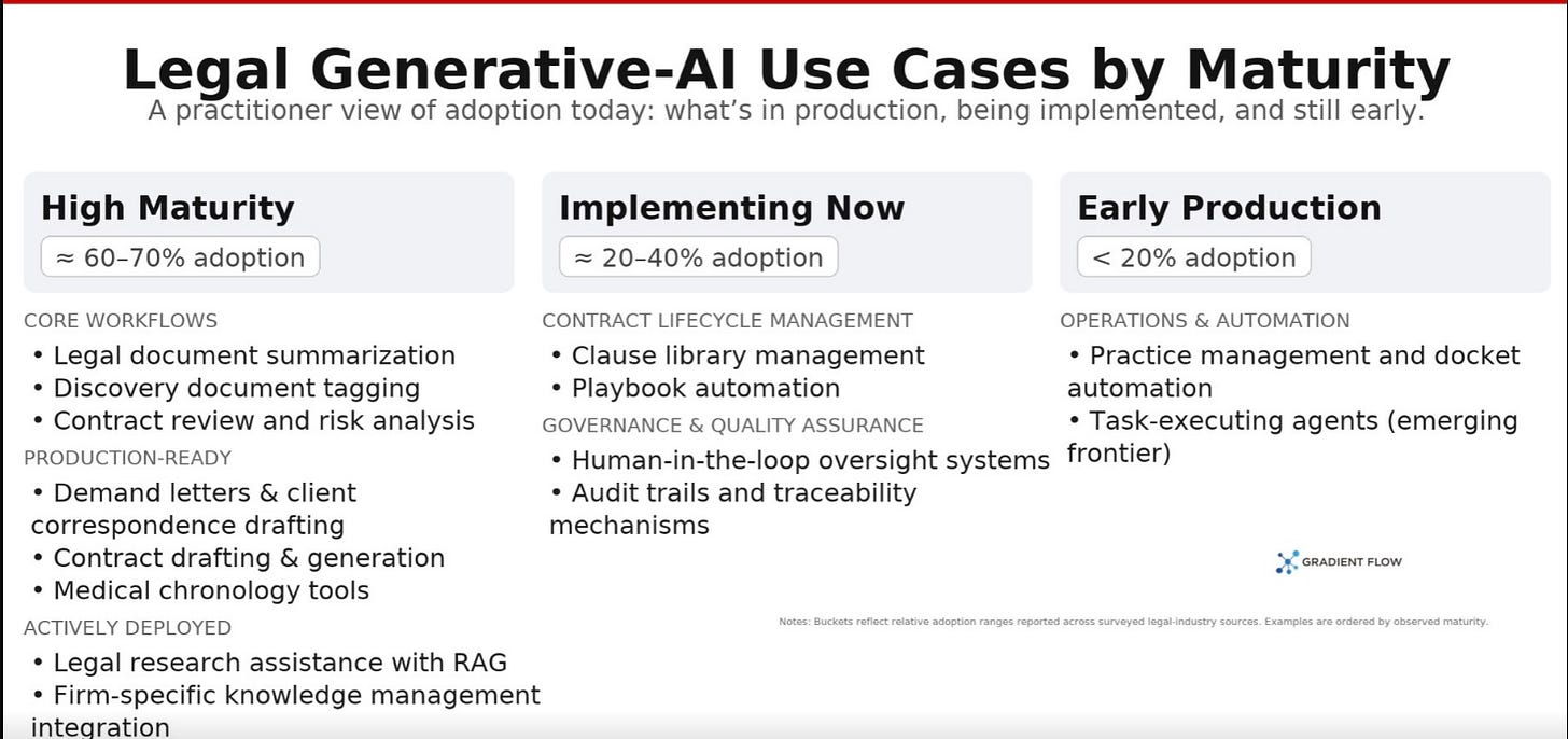 Ma perché proprio il legal? Ben Lorica 罗瑞卡, una delle voci più autorevoli nell’analisi dell’AI enterprise, ha pubblicato su Gradient Flow un pezzo che ti consiglio di leggere per intero (“AI’s Biggest Enterprise Test Case is Here”). La tesi è che il settore legale sia oggi lo stress test definitivo per l’AI generativa in azienda: se il tuo sistema riesce a sopravvivere ai vincoli di confidenzialità, alle barriere informative tra clienti (ethical wall) e alla tracciabilità completa (audit trail), allora può funzionare ovunque. Il motivo è strutturale: la professione legale è fatta quasi interamente di testo: ricerca, redazione, analisi documentale, revisione contrattuale. È il terreno ideale per i modelli linguistici, ma anche il più insidioso: gli errori non sono bug, sono responsabilità professionali.